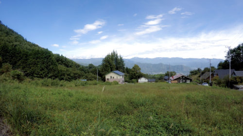 目の前に広がる山々を望む、平地サイト。区画ながら、各サイト